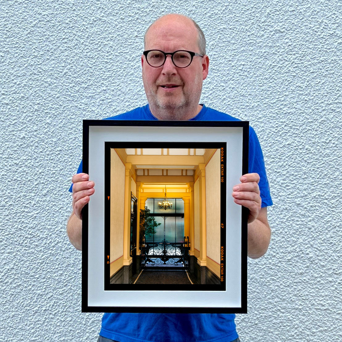 Richard makes the c-type prints from negative in his own analogue colour darkroom in Cambridge. His paper of choice is Kodak Professional Endura Premier Gloss. When Richard has chosen to evolve the artwork, we work with Streamline Colour Lab. In our studio the print is dry-mounted to dibond which ensures a very flat image surface in both the short and long term. The prints are matted (window mounted) using a museum quality 100% cotton rag board especially manufactured to be compatible with the C-type archival Kodak photographic paper Richard uses. Richard does all mounting himself, using his precision engineering background to create the finished artwork. Eleanor fits the artworks to the frames. Traditionally photographic prints are signed and numbered on the back, accompanied by a certificate of authenticity. They can be signed on the front of the mount by request. If you would like us to make a larger artwork that is possible, the sizes listed are the largest we can make in our darkroom but we can go larger with our printing partners so please get in touch to discuss it.