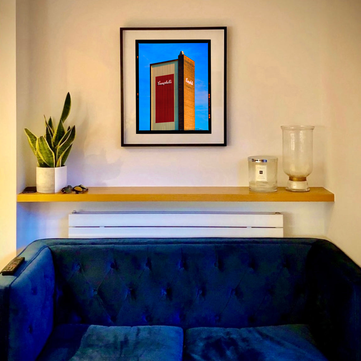 Campbell's Soup, the iconic architecture of the UK factory, photograph by Richard Heeps. Printed full frame presented with the Kodak film border, first executed in Richard's darkroom in January 2023.